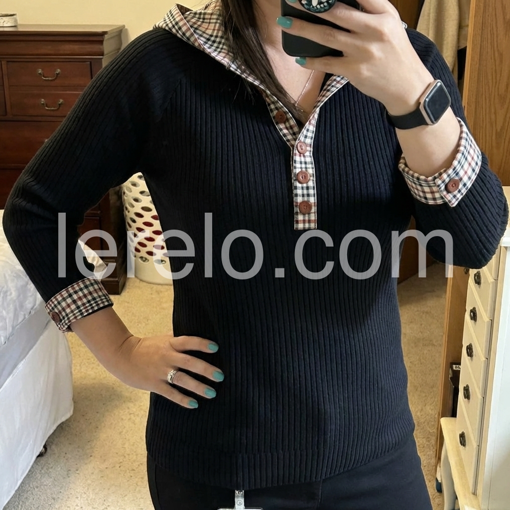 "Yes!It runs true to the garment size chart please choose your size based on your measurements."This long sleeve sweatshirt combines classic comfort with refined detailing. The black base provides versatile styling options, while the check trim accents add visual interest and a polished touch. Crafted for everyday wear, it delivers the warmth and durability you'd expect from a quality sweatshirt. The long sleeves offer extended coverage, making it ideal for layering or wearing solo during cooler seasons. A dependable wardrobe staple that balances casual ease with understated sophistication.
